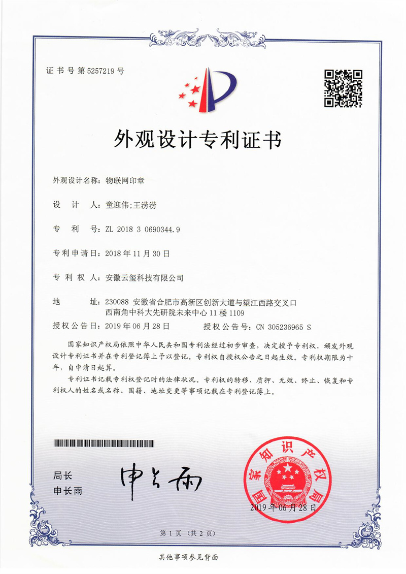 公司原創發明一體式智能印章技術,引領國內外新一代智能印簽創新變革。獲中日韓多項發明專利,徹底解決了實體印章和電子印簽管控的社會難題,獲國務院國資委全國央企熠星二等獎。公司聯合國家信息安全產品認證中心、公安部三所、信通院、中國印章協會等,主導起草了行業首個智能印章安全認證標準和智能印章產品標準,引領了智能印章行業發展。